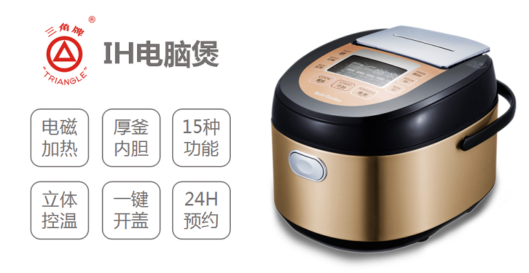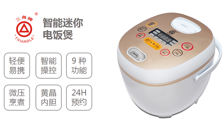 Founded in 1963, the brand Triangle is mainly specialized in the rice cookers production. Its products are sold to Southeast Asia and have been reputed all time. For 50 years, the brand has been committed to providing consumers with reliable and affordable electric appliances relying on its classic producing processes and unremitting innovation. It has extended from the field of rice cooker to all kitchen appliances other household electric appliance. The products are sold both domestic and overseas. So far, Triangle products include rice cooker, electric kettle, electric pressure cooker, non-electric pressure cooker, electromagnetic oven, smoke exhaust ventilator, cooking utensils, water heater, fridge, commercial kitchen equipment and air cleaner, with an annual output and sales volume of over 10 million sets. Some products secure top position in terms of sales volume in the domestic market. It has become a China Well-known Trademark, a Guangzhou famous trademark and a Guangzhou Time-honored Brand.